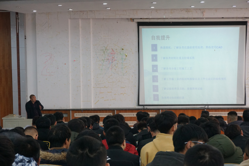 能源與交通工程學院“成長之路”系列教育講座第一講于2月13日在教三樓西階梯教室隆重舉行,道路橋梁工程技術專業04-4班畢業生、江蘇龍典建設集團有限公司項目經理褚忠海校友為路橋15級同學做專題講座。
