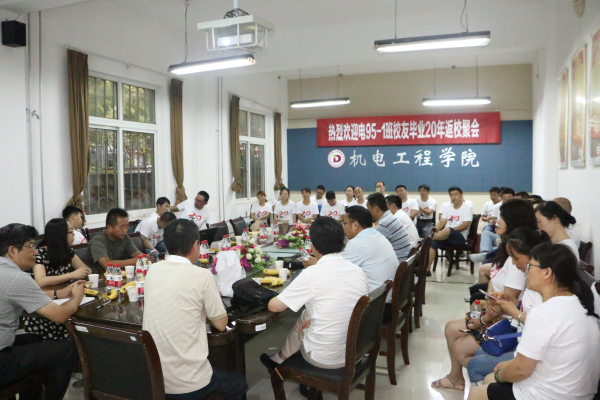 7月機電工程學院原電95-1班30余名校友回到闊別已久的母校,追憶同窗舊事,暢談人生感悟,展望美好未來。機電工程學院黨總支書記潘峰、院長仇文寧、退二線老領導張君偉和部分原班級任課教師、輔導員出席了此次聚會。