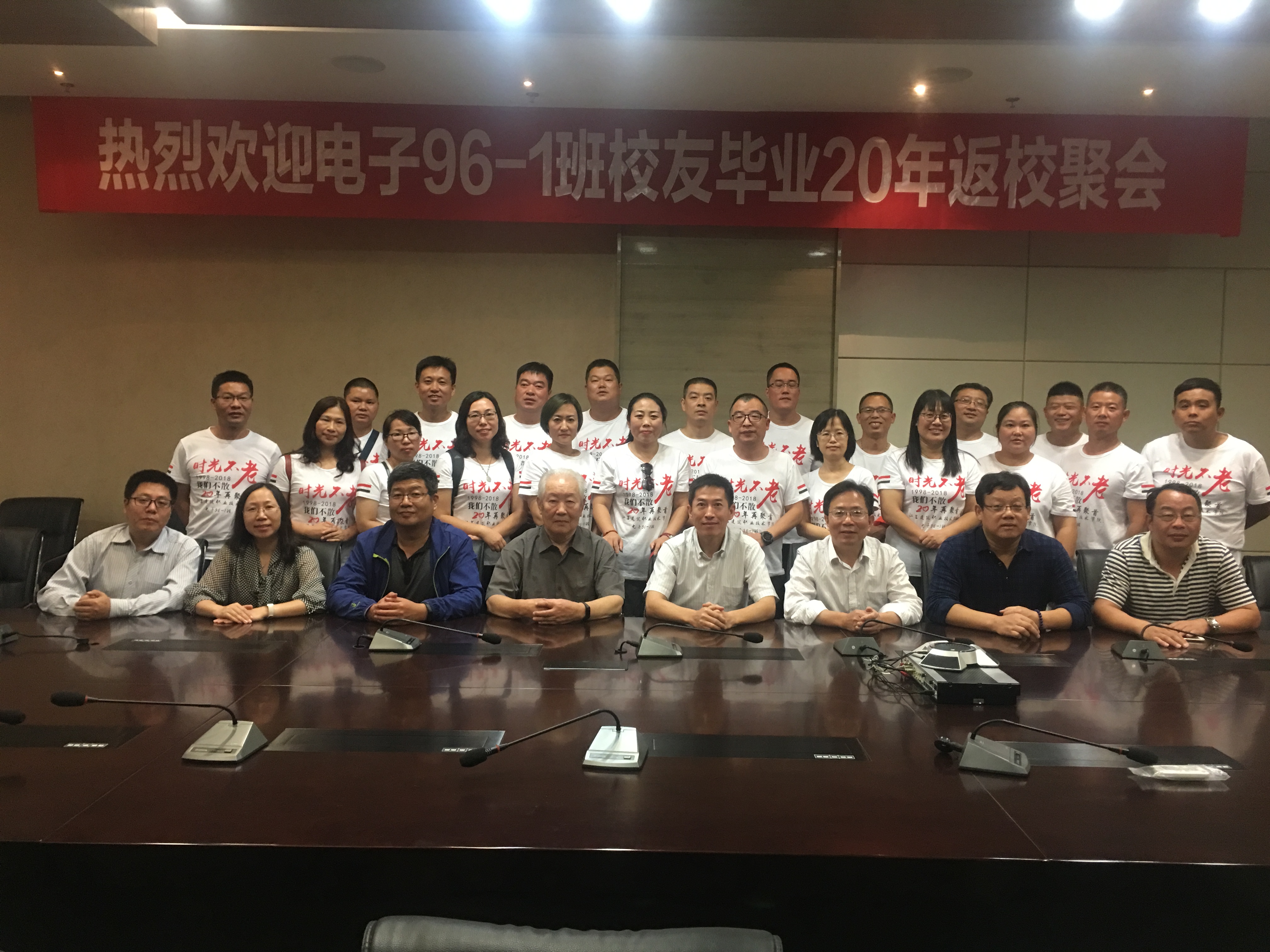 機(jī)電工程學(xué)院電子96-1班和機(jī)電94-2班57名校友分別于10月2日、3日回到母校,共慶畢業(yè)20周年,暢談人生感悟,追憶同窗往事,擁抱母校美好景色,展望美好未來。機(jī)電工程學(xué)院黨總支書記潘峰、院長仇文寧出席了此次聚會。