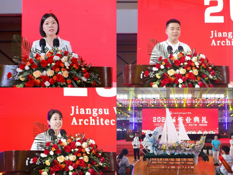 教師代表、建筑建造學(xué)院教師趙美霞,畢業(yè)生代表、經(jīng)濟(jì)管理學(xué)院酒店21-1班戴亦韻,在校生代表、建筑裝飾學(xué)院室設(shè)22-2班孫壯壯先后發(fā)言。