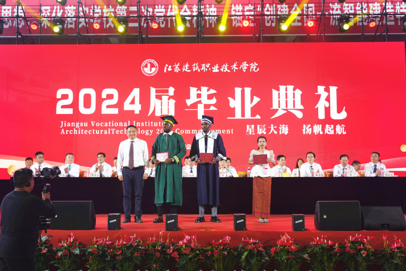 6月7日下午,我校2024屆畢業(yè)典禮在校體育館舉行。黨委副書(shū)記、校長(zhǎng)沈士德,黨委副書(shū)記梁惠,黨委委員、紀(jì)委書(shū)記朱作付,黨委委員、副校長(zhǎng)蔣兆峰,相關(guān)職能部門負(fù)責(zé)人,各二級(jí)學(xué)院院長(zhǎng)、教師代表、專兼職輔導(dǎo)員及2024屆全體畢業(yè)生參加典禮?!拔磥?lái)非洲計(jì)劃”項(xiàng)目的合作院校及喀麥隆文理學(xué)院、非洲計(jì)算機(jī)學(xué)院校方代表等應(yīng)邀出席典禮。畢業(yè)典禮由梁惠主持。