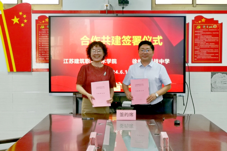 6月17日下午,我校與徐州市科技中學在科技中學會議室舉行合作共建簽約儀式,這一簽約標志著雙方在資源共享、師資培訓、學生培養、科技教育等方面將展開全面深入的合作。黨委副書記、校長沈士德,科技中學校長吳小凡出席簽約儀式,并代表雙方學校簽署合作共建協議。科技中學副校長高峰、段波以及我校相關部門負責人參加簽約活動。