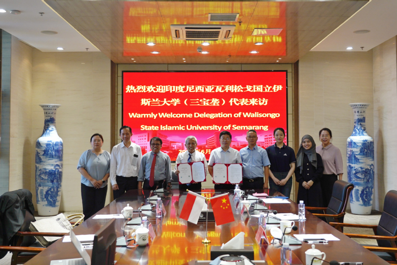 6月17日,印尼三寶壟瓦利松戈國(guó)立伊斯蘭大學(xué)校長(zhǎng)尼扎爾、副校長(zhǎng)穆克欣、國(guó)際處處長(zhǎng)阿古斯一行3人來訪我校洽談交流合作。黨委副書記、校長(zhǎng)沈士德在圖書館會(huì)議室接待來訪代表團(tuán),國(guó)際合作與交流處相關(guān)工作人員陪同洽談。