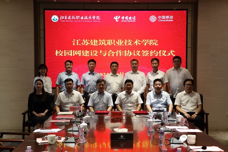 8月8日,我校與中國(guó)移動(dòng)通信集團(tuán)江蘇有限公司徐州分公司、中國(guó)電信股份有限公司徐州分公司在我校圖書(shū)館會(huì)議室舉行“校園網(wǎng)建設(shè)與合作協(xié)議”簽約儀式。黨委副書(shū)記、校長(zhǎng)沈士德,黨委委員、副校長(zhǎng)劉海波,徐州移動(dòng)總經(jīng)理徐星宇、副總經(jīng)理吳浩,徐州電信紀(jì)委書(shū)記詹明非、副總經(jīng)理劉偉偉等領(lǐng)導(dǎo)出席簽約儀式。校黨委宣傳部、信息與網(wǎng)絡(luò)中心等部門領(lǐng)導(dǎo),徐州移動(dòng)市場(chǎng)部、徐州電信政企客戶部等負(fù)責(zé)同志參加儀式。此次簽約儀式由劉海波主持。