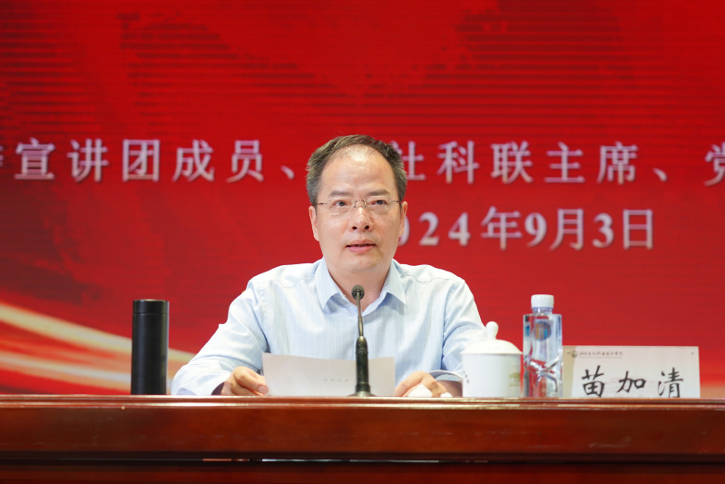 報(bào)告會(huì)上,苗加清圍繞習(xí)近平總書記在黨的二十屆三中全會(huì)上的重要講話及全會(huì)《決定》,從深刻認(rèn)識(shí)把握全會(huì)的里程碑意義、深入學(xué)習(xí)領(lǐng)會(huì)習(xí)近平總書記在全會(huì)上的重要講話精神、全面準(zhǔn)確理解《決定》提出的進(jìn)一步全面深化改革重大舉措等方面,對(duì)黨的二十屆三中全會(huì)精神作了系統(tǒng)宣講和深入闡釋,為推動(dòng)全會(huì)精神在學(xué)校落地見效提供了有力指導(dǎo)。