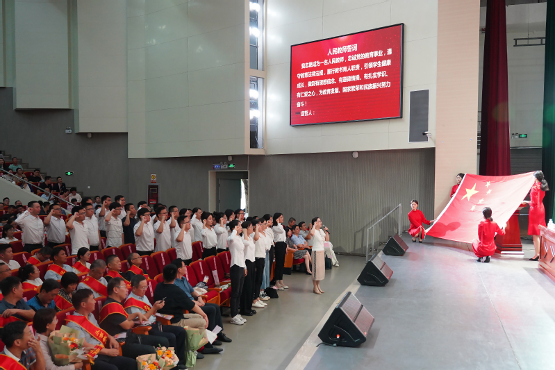 大會現(xiàn)場,新入職教師在建筑裝飾學(xué)院陸文鶯教授的帶領(lǐng)下進(jìn)行了莊嚴(yán)的入職宣誓。建筑管理學(xué)院教師郭紅軍作為優(yōu)秀教師代表進(jìn)行了工作經(jīng)驗(yàn)分享。交通工程學(xué)院路橋23-4班謝萌萌代表學(xué)生發(fā)言。