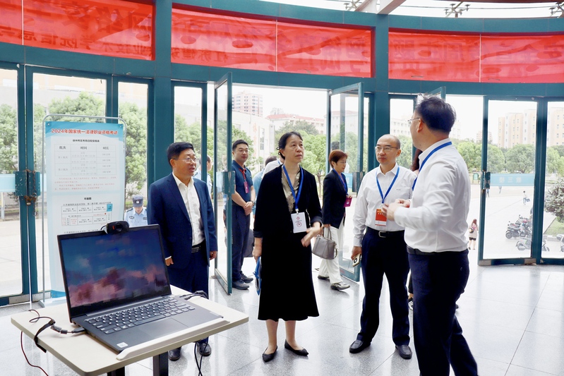 9月21日-22日,2024年國家統一法律職業資格客觀題考試在我校舉行。徐州市副市長楊健,省司法廳一級巡視員張亦軍,黨委副書記、校長沈士德,市司法局領導及校實驗實訓處相關負責人到考點巡查督考。