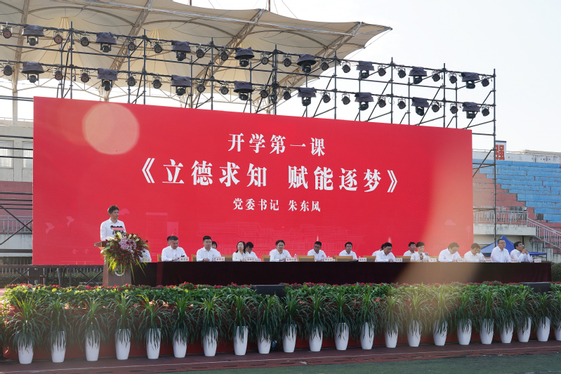 最后,朱東風以《立德求知 賦能逐夢》為題,為新生講授開學第一課。他向新生簡要介紹了學校辦學歷史、育人成就及發展方向,并對同學們提出三點期望:一要激揚青春,以堅定信仰領航奮斗人生;二要求知問道,以求實創新筑牢夢想之基;三要賦能逐夢,以至臻至善成就精彩人生。他希望,同學們在接下來的大學生活中能夠秉承“厚生尚能”的校訓,弘揚“求實創新”的校風,以勇毅向前的姿態、追求卓越的精神,立德求知、賦能逐夢,以實際行動向自己、向家人、向社會交出滿意的答卷,不負韶華、不負時代、不負黨和人民的期望!