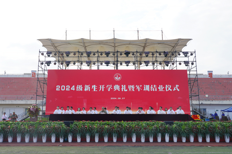 9月27日下午,我校2024級新生開學典禮暨軍訓結業儀式在西操場舉行。黨委書記朱東風,黨委副書記、校長沈士德,承訓部隊上校副政治委員張寶軍,黨委副書記梁惠,黨委委員、紀委書記朱作付,黨委委員、副校長劉海波,黨政辦公室、黨委組織部、黨委宣傳部、教務處、學生工作處、保衛處、團委等部門負責人,軍訓教官,各二級學院黨政領導、新生班主任及2024級新生參加典禮。典禮由梁惠主持。