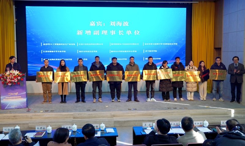 徐州市淮海服務外包職教集團及淮海經濟區新一代信息技術行業產教融合共同體年會上,副秘書長、我校信電工程學院院長吳兆立代表職教集團、行業產教融合共同體作年度工作報告,回顧總結了過去一年在建設技能培訓和競賽平臺、創新構建現代學徒制實踐教學體系、“中職-高職-應用型本科”聯動培養體系等方面取得的成效。李清為華為技術有限公司等10個職教集團年度先進單位代表頒獎;劉海波為徐州360人工智能協同安全產業基地等12家職新增職教集團副理事長單位授牌。