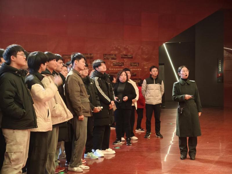 在淮海戰役烈士紀念館內,專業講解員以生動解說,引領師生們穿梭于歷史的長河之中。一件件珍貴文物,如飽經戰火的槍炮、烈士們遺留的行軍行囊,默默講述著往昔的悲壯與榮耀。歷史圖片生動再現了戰時的緊張氛圍與激烈戰斗,文獻資料則詳盡記錄了戰役的每一個細節。同學們凝視著這些歷史的見證,心靈深受震撼,仿佛親身穿越回那段烽火連天的歲月,深切感受革命先輩為國家解放所付出的巨大犧牲與無畏精神。這份感動與敬仰,在同學們心中悄然種下愛國情懷與使命擔當的種子。