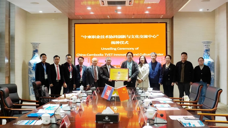 隨后,劉海波和費科迪代表兩校共同揭牌“中柬職業技術協同創新與文化交流中心”。