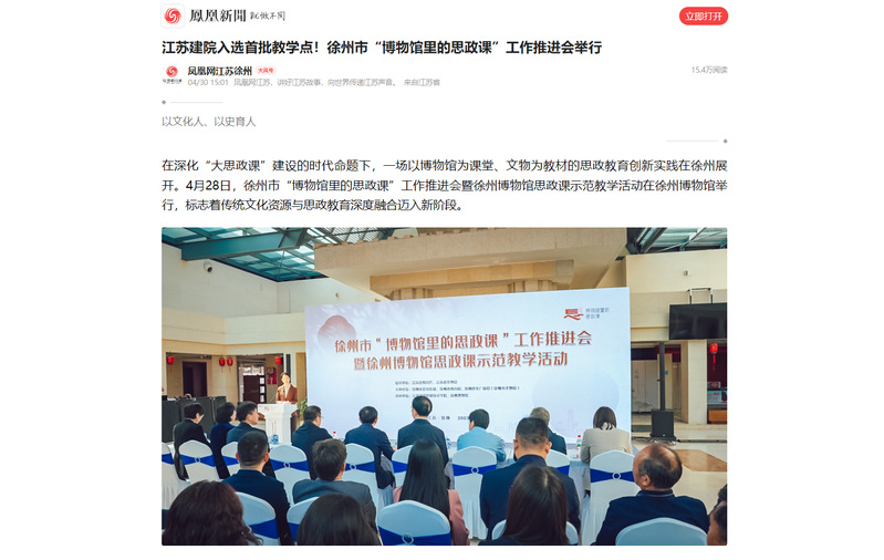 【鳳凰網】江蘇建院入選首批教學點!徐州市“博物館里的思政課”工作推進會舉行