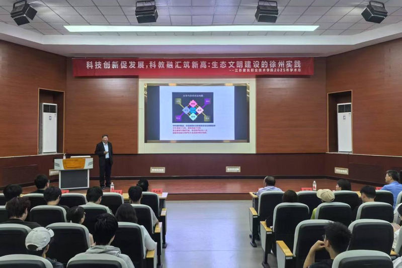 韓寶平以“生態文明建設的徐州實踐”為題,結合學校升本發展、生態文明社會與美麗中國建設、習近平生態文明思想等內容,系統闡述了徐州在生態文明建設、數字化發展路徑和生態轉型中的創新探索。報告中,他深入分析了徐州近年來通過科技賦能、科教融合等方式推動生態文明建設的實踐經驗,并展望了未來區域可持續發展的前景。報告內容兼具理論深度與實踐價值,為我校師生提供了啟發性的學術指導。