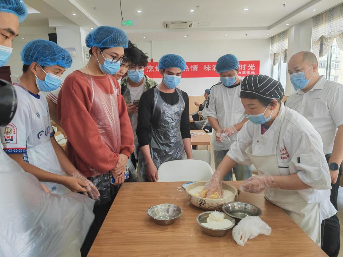 膳食工坊開展的“一餐一課的哲學”活動獨具匠心,學生在揉面、塑形、烘焙的勞動過程中,與指導教師探討“飲食的民生溫度”。校黨委副書記梁惠現場參與,“當學生親手制作蛋糕與酥餅時,我們同步講解飲食文化中歷史與文化傳承,勞動就成了最生動的思政課。”