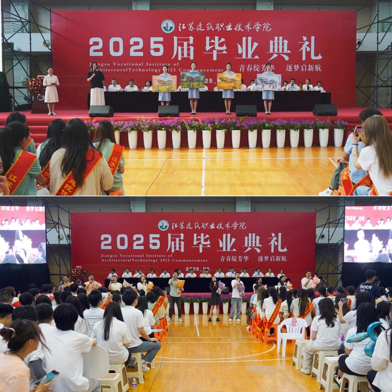 6月6日下午,我校2025屆畢業典禮在校體育館舉行。黨委副書記、校長沈士德,黨委副書記梁惠,黨委委員、紀委書記朱作付,黨委委員、副校長劉海波,黨委委員、副校長蔣兆峰,黨委委員、副校長朱鐵壁,相關職能部門負責人,各二級學院院長、教師代表、專兼職輔導員及2025屆全體畢業生參加典禮。畢業典禮由梁惠主持。