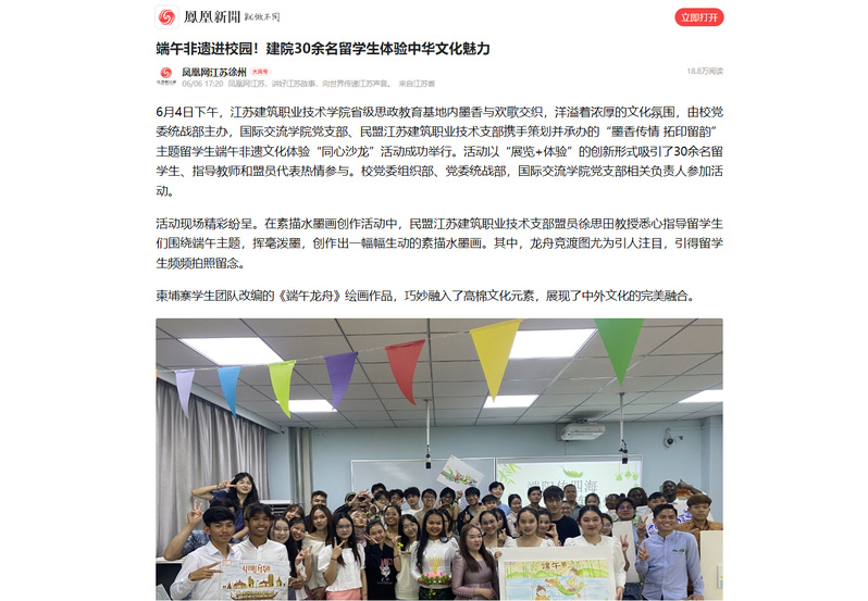 6月4日下午,江蘇建筑職業技術學院省級思政教育基地內墨香與歡歌交織,洋溢著濃厚的文化氛圍,由校黨委統戰部主辦,國際交流學院黨支部、民盟江蘇建筑職業技術支部攜手策劃并承辦的“墨香傳情 拓印留韻”主題留學生端午非遺文化體驗“同心沙龍”活動成功舉行。活動以“展覽+體驗”的創新形式吸引了30余名留學生、指導教師和盟員代表熱情參與。校黨委組織部、黨委統戰部,國際交流學院黨支部相關負責人參加活動。