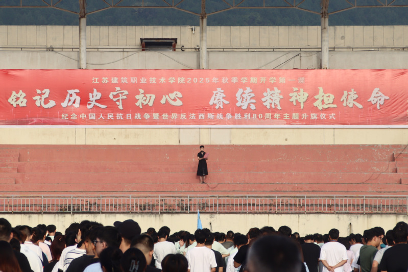 9月1日上午,我校全體在校學生齊聚西操場參加新學期升國旗儀式,儀式同步紀念中國人民抗日戰爭暨世界反法西斯戰爭勝利80周年,校黨委副書記梁惠參加儀式并講話。